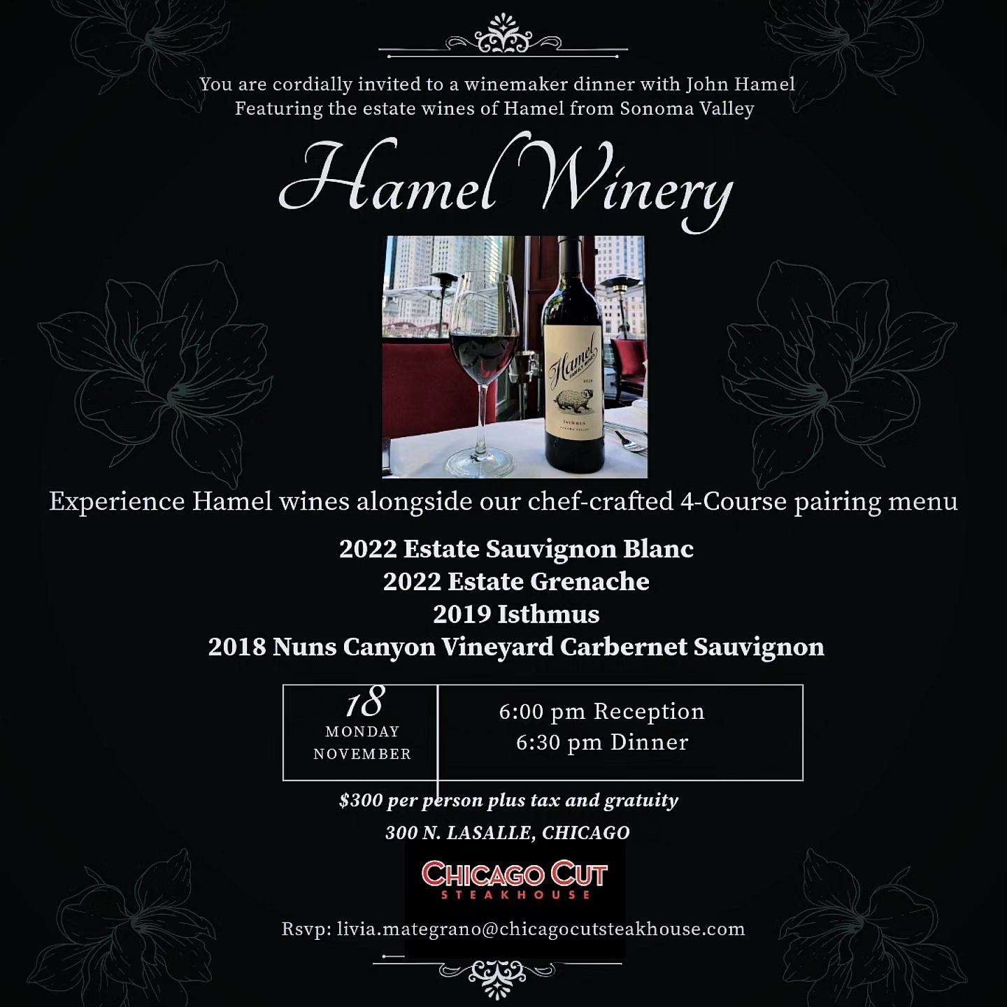 R.S.V.P is now available: livia.mategrano@chicagocutsteakhouse.com